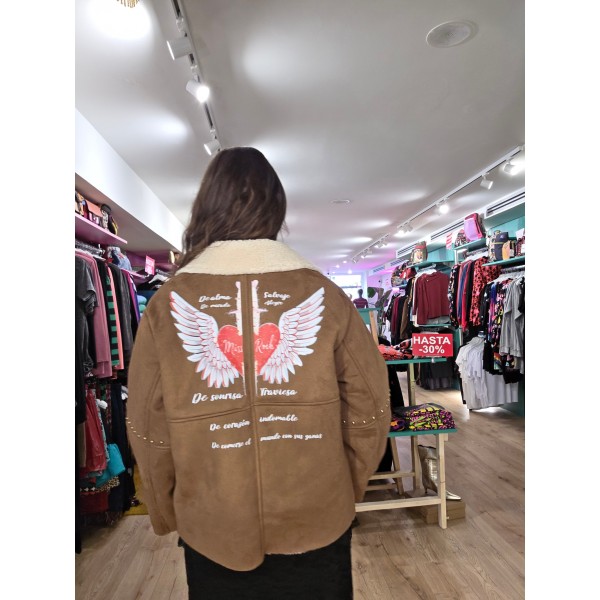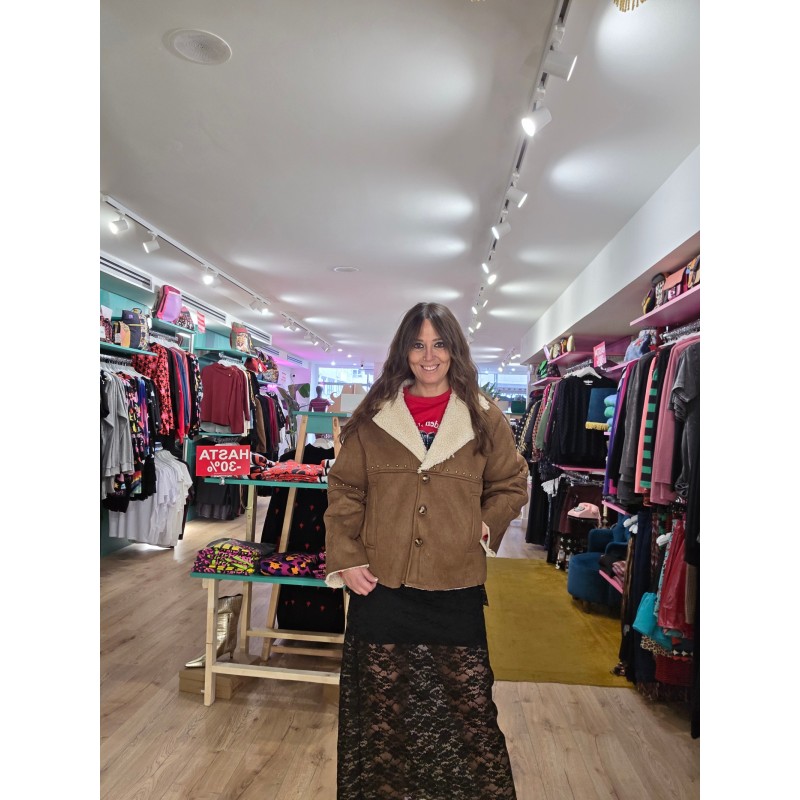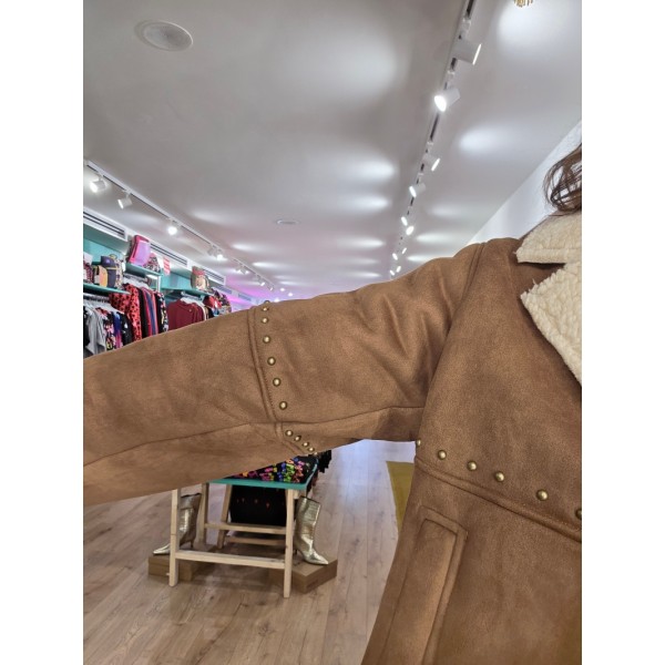 Chaqueta de ante color camel con borreguillo interior en color crudo.