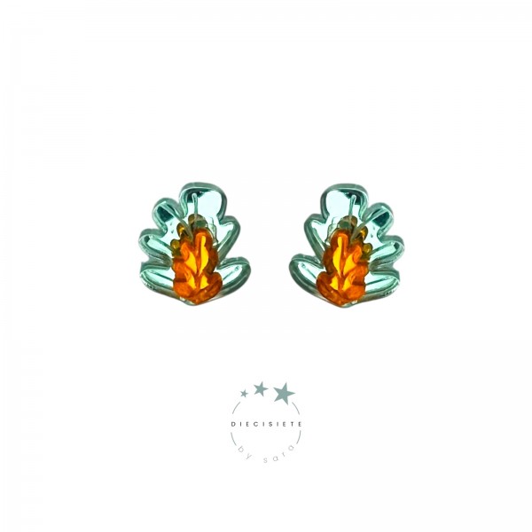 PENDIENTES MINI HOJA NARANJA Y VERDE
