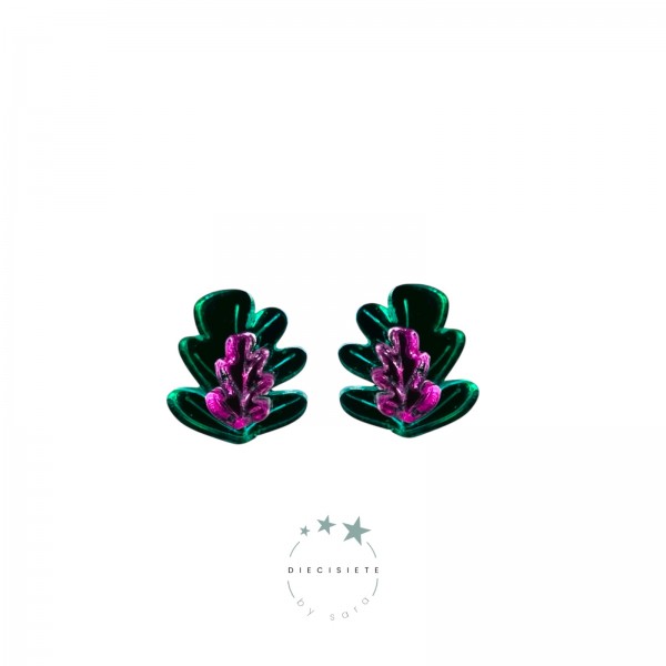 PENDIENTES MINI HOJA VERDE Y ROSA