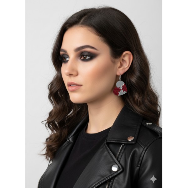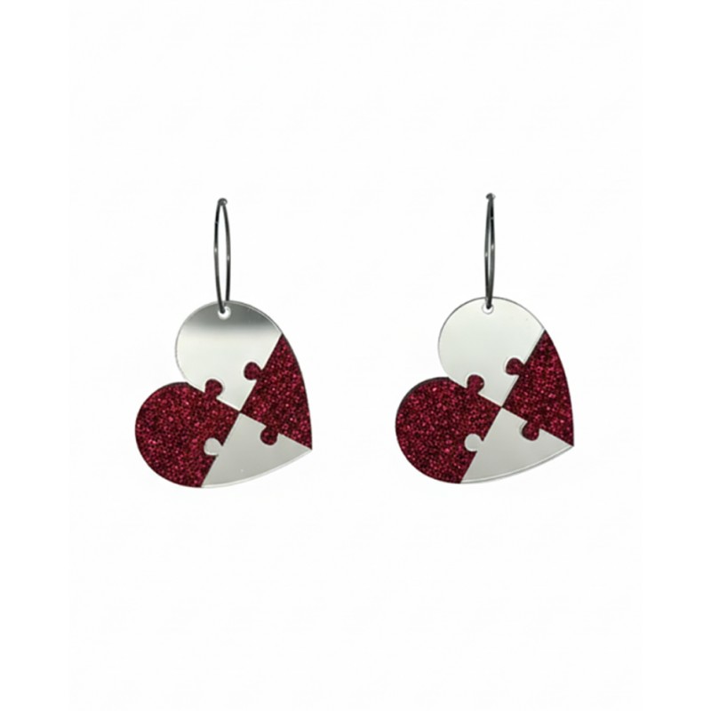 CORAZÓN PUZZLE GLITTER ROSA Y PLATA