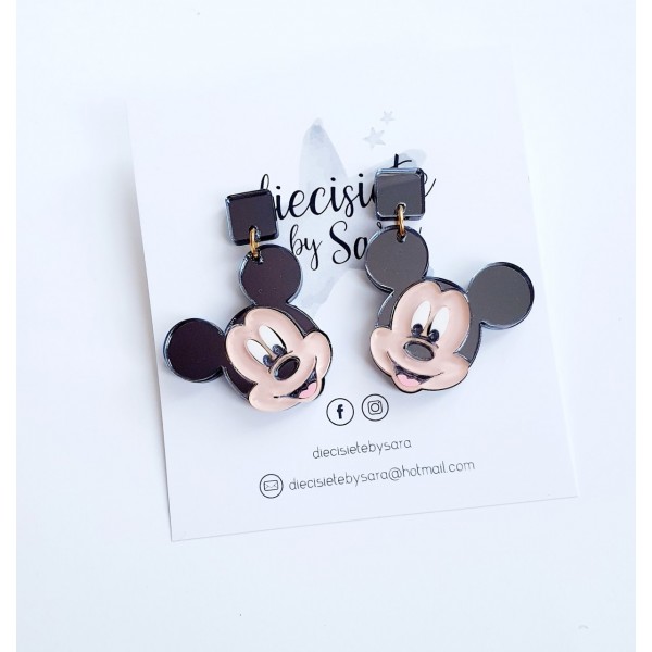 Pendientes con imagen de mickey en metacrilato