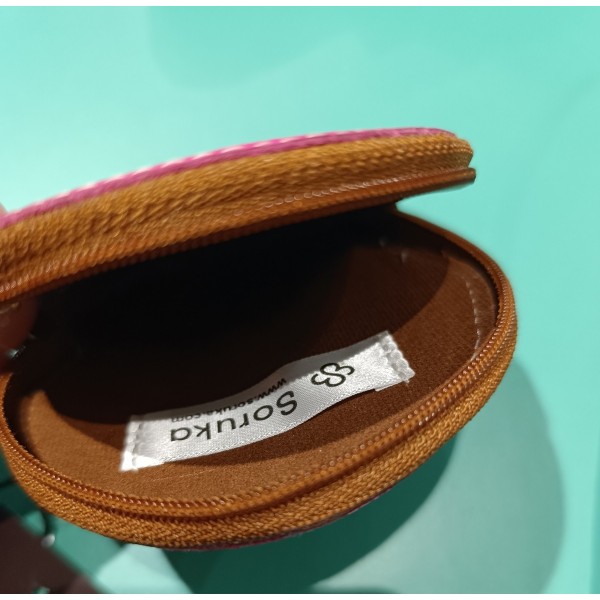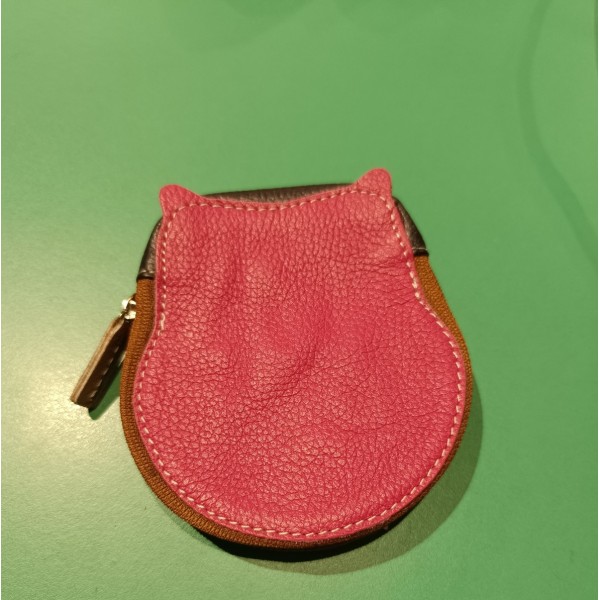 Monedero de piel en forma de oso que cierra con cremallera.