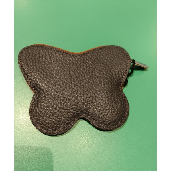 Monedero de piel en forma de mariposa que cierra con cremallera.