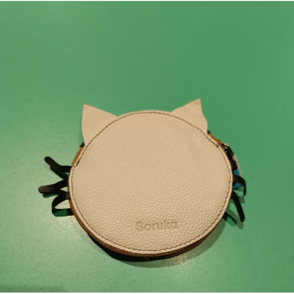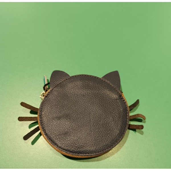 Monedero de piel en forma de gato que cierra con cremallera.