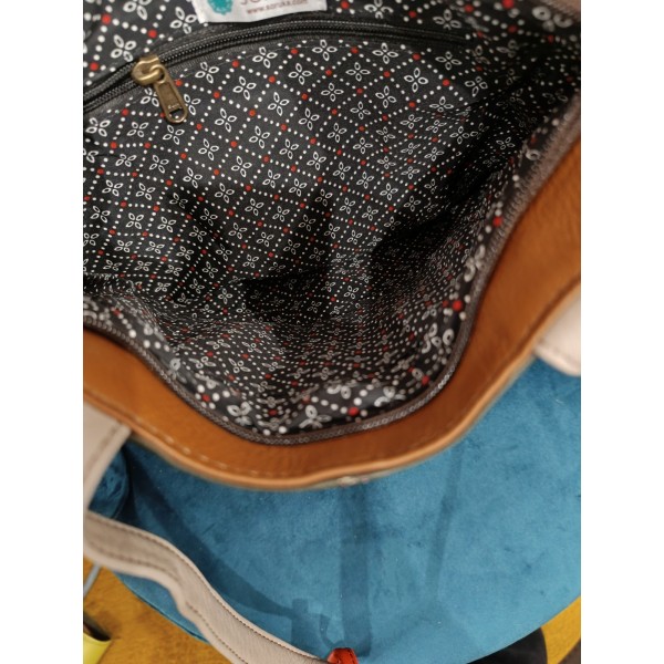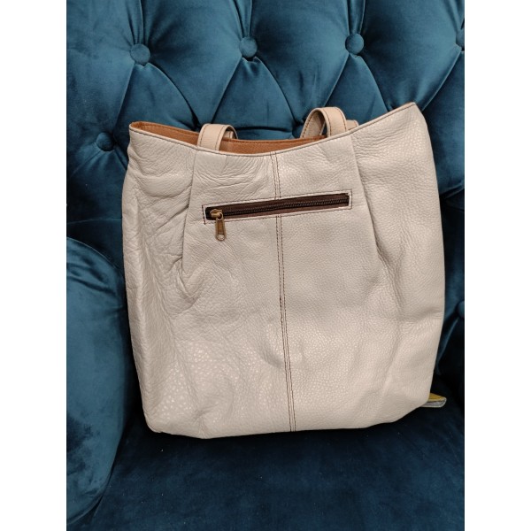 Bolso de piel de tamaño grande y doble asa. Con adorno de piel