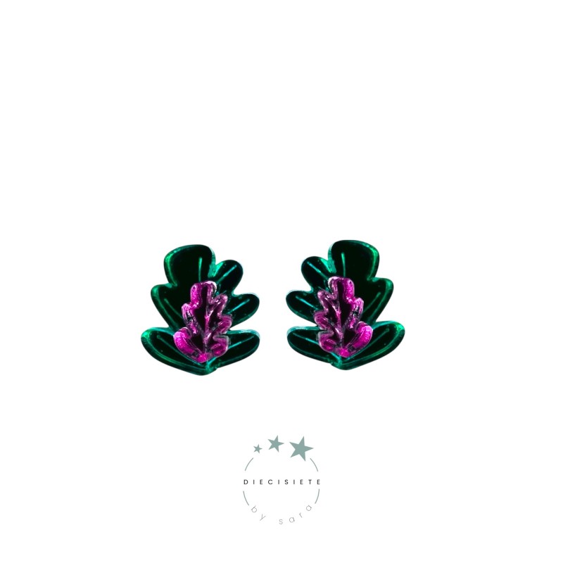 PENDIENTES MINI HOJA ROSA Y VERDE