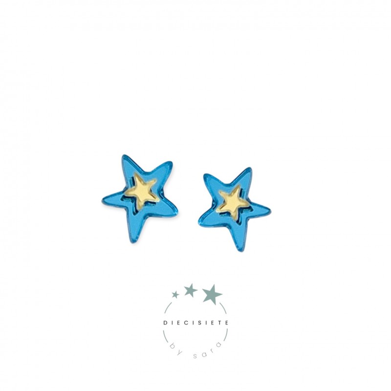 PENDIENTES MINI ESTRELLITA DOBLE AZUL Y ORO