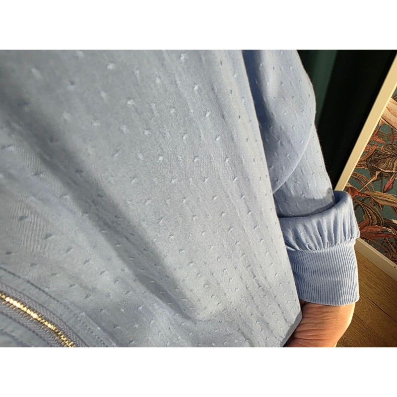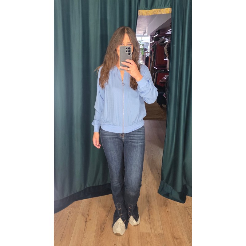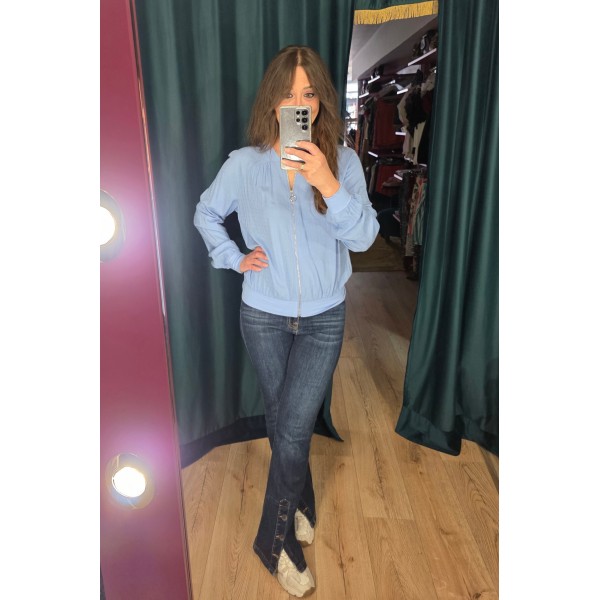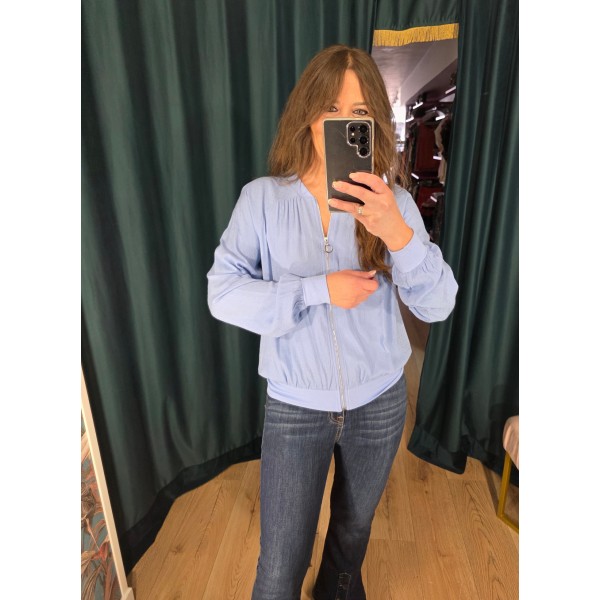 Bomber finita en color azul cielo con tejido tipo plumeti.