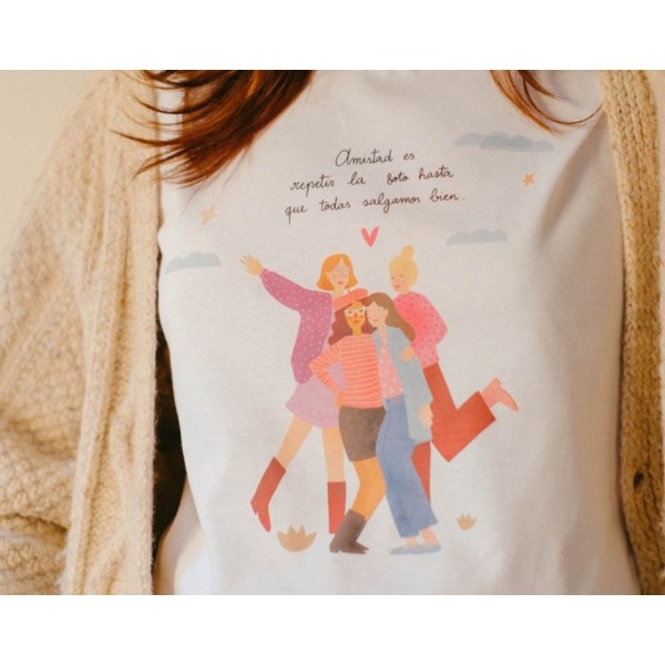 CAMISETA "AMISTAD ES REPETIR LA FOTO HASTA QUE TODAS SALGAMOS BIEN"