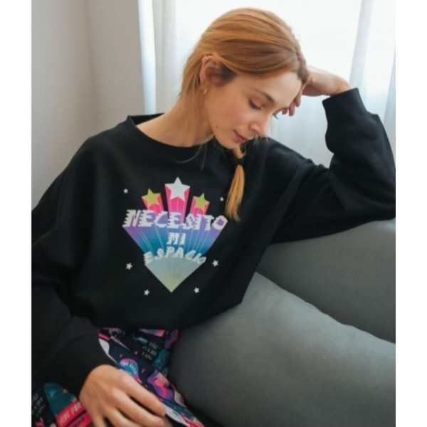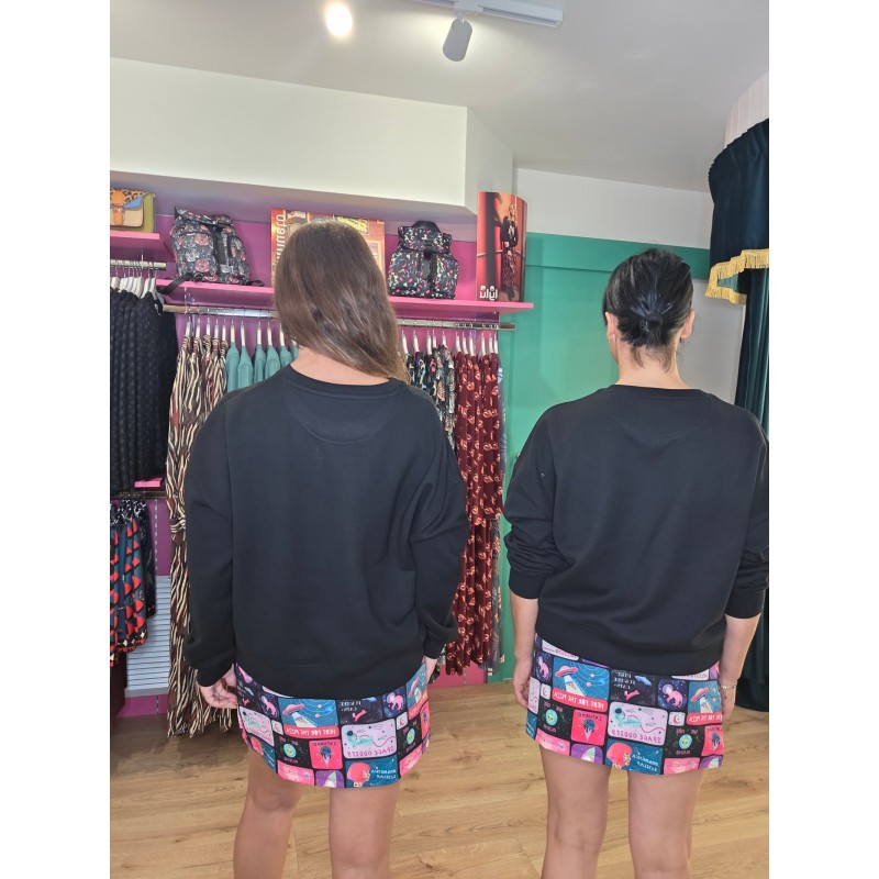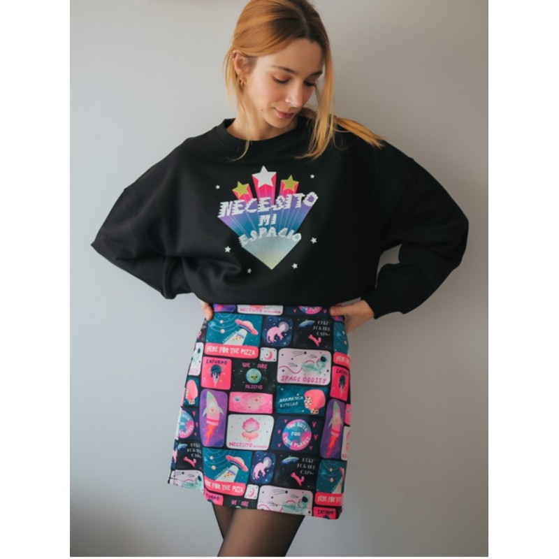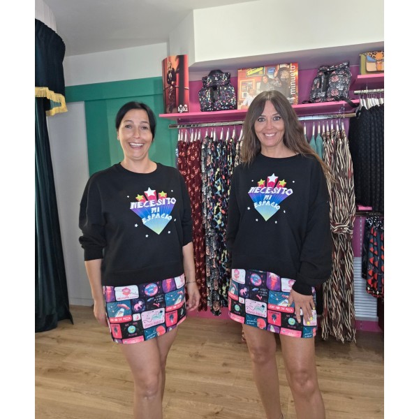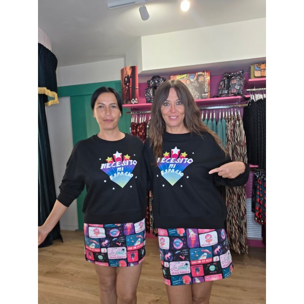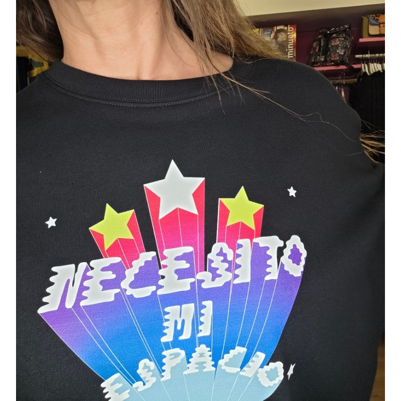 Sudadera negra afelpadita rollo over con mensaje que pone Necesito mi Espacio.