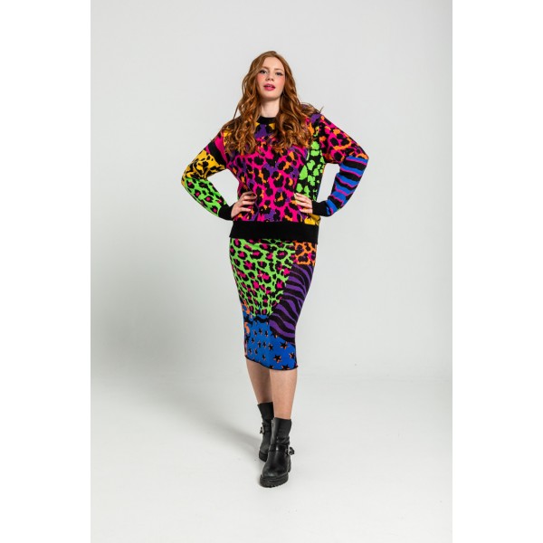 FALDA PUNTO TEJIDO DE ESTAMPADO VARIADO DE ANIMAL PRINT- CAÓTICA