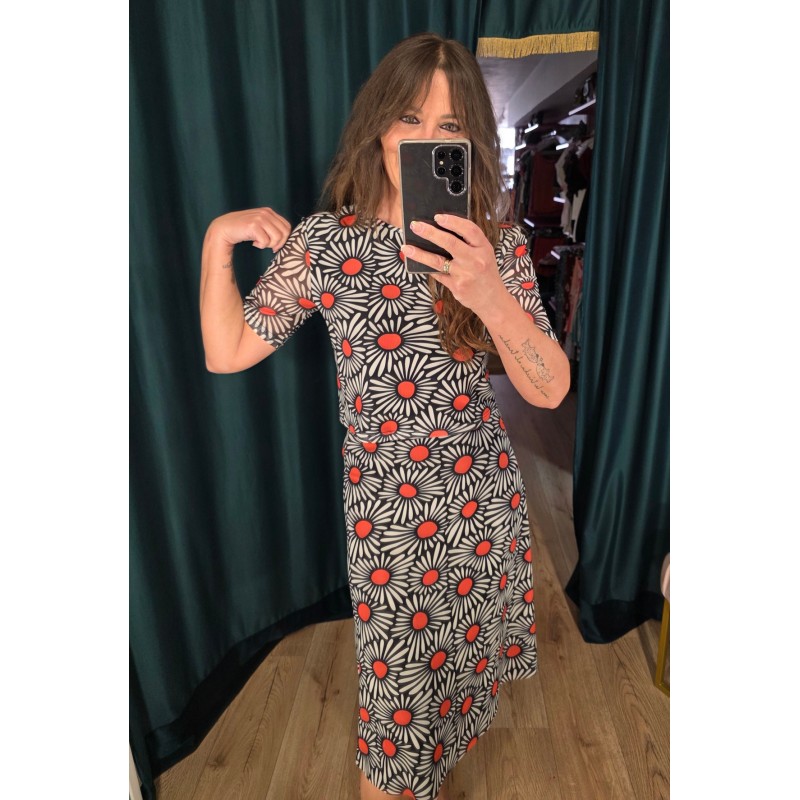 Color negro y estampado de flores.