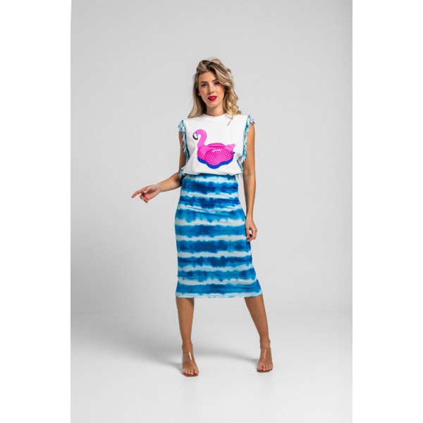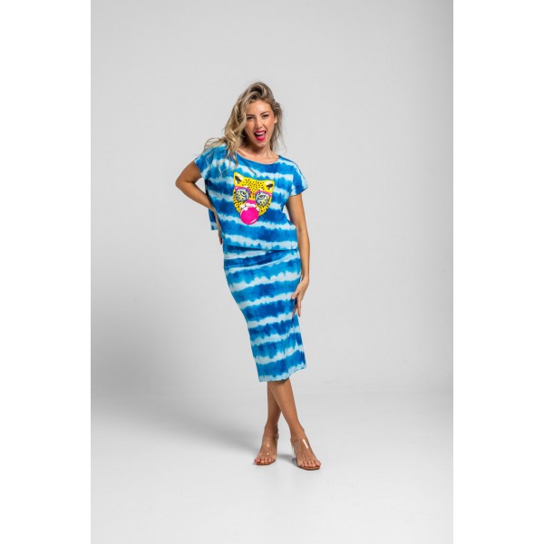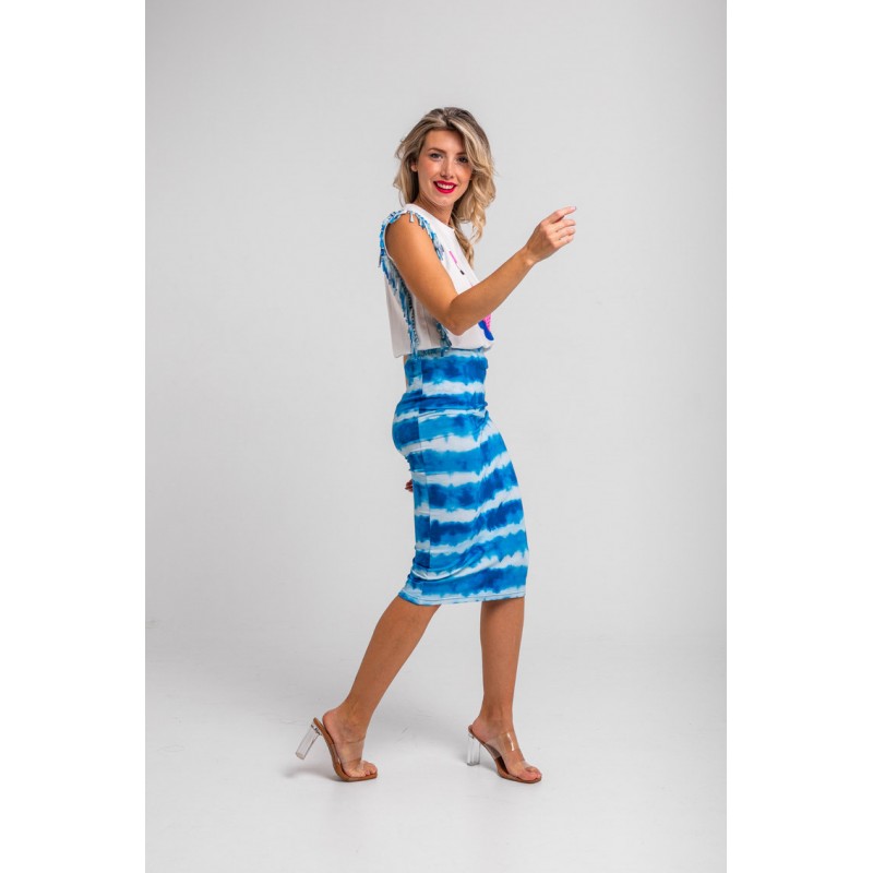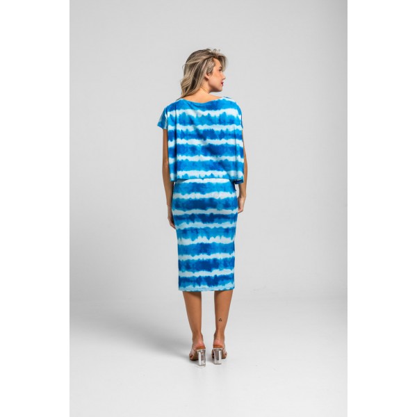 FALDA TUBO MIDI ELÁSTICA TIE DYE AZUL-POOL PARTY