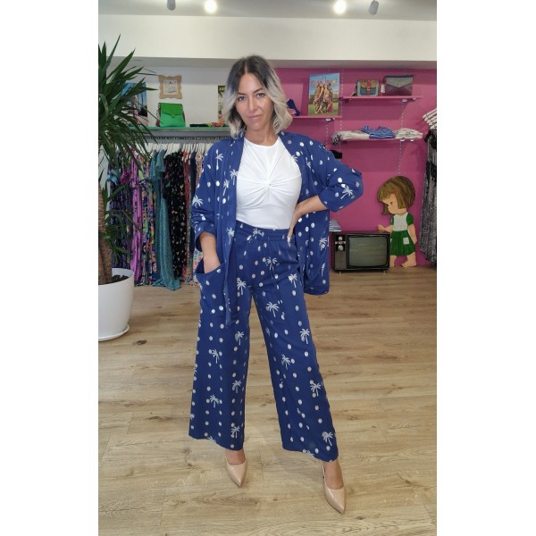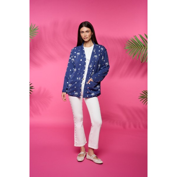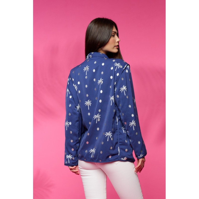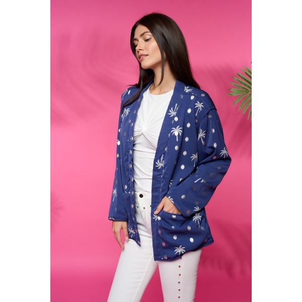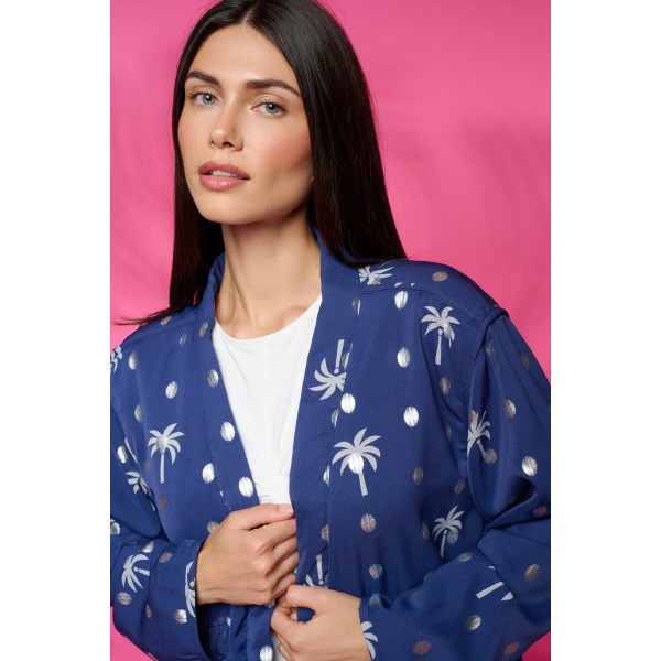 Chaqueta tipo kimono de manga larga. Estampado metalizado. Forro 100% algodón.