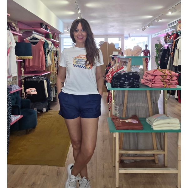 Para el lavado de esta prenda recomendamos lavar del revés en un programa corto y con detergente neutro, no introducir en secadora, mejor colgar un rato al sol y nunca planchar su impresión.