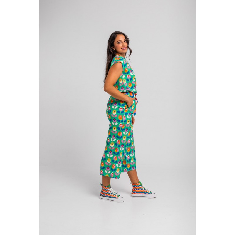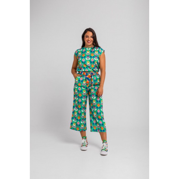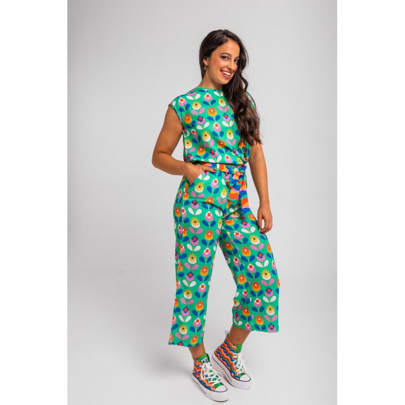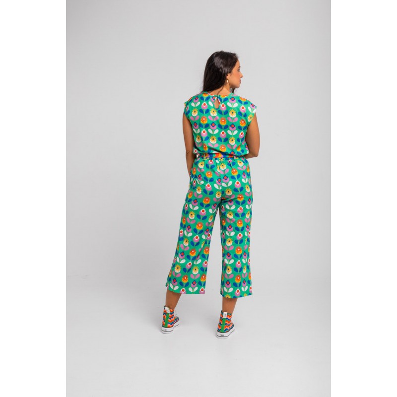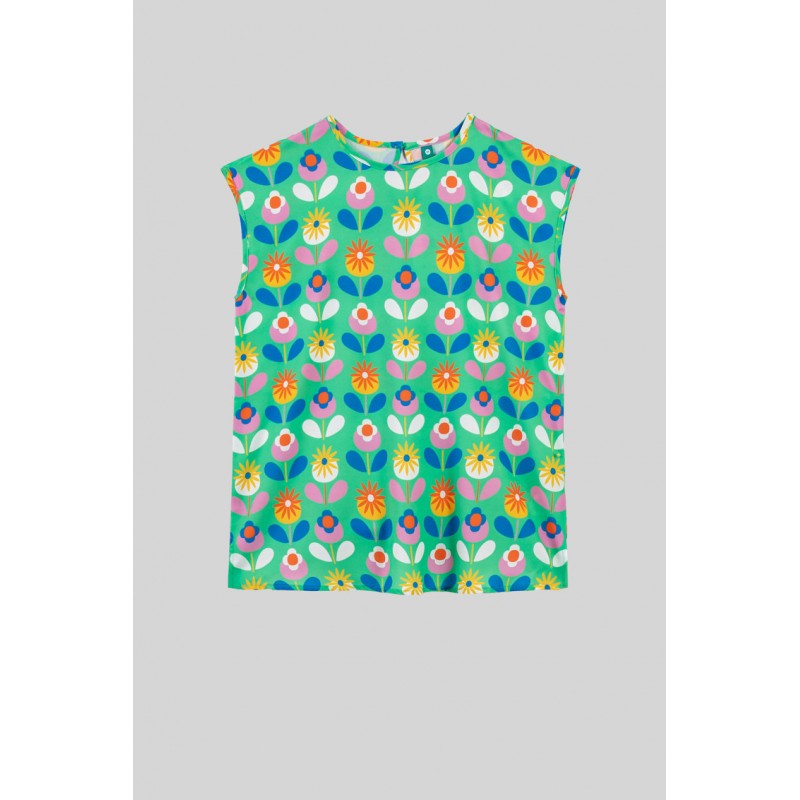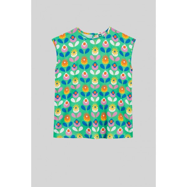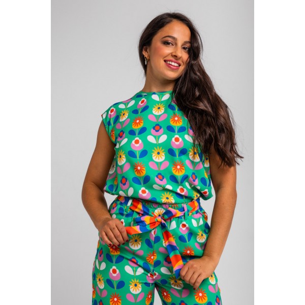 BLUSA SIN SISA VERDE DE FLORES- FLORECIENDO