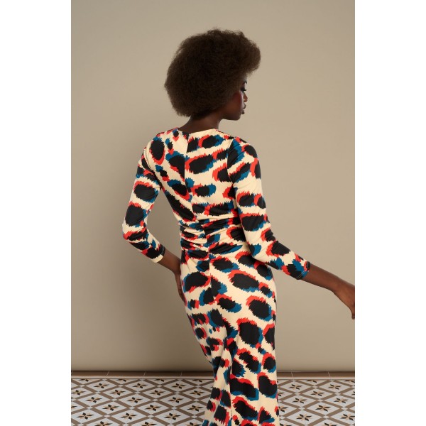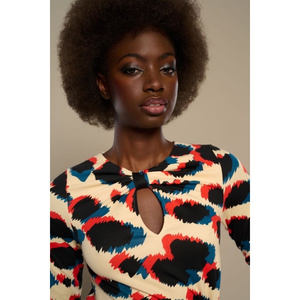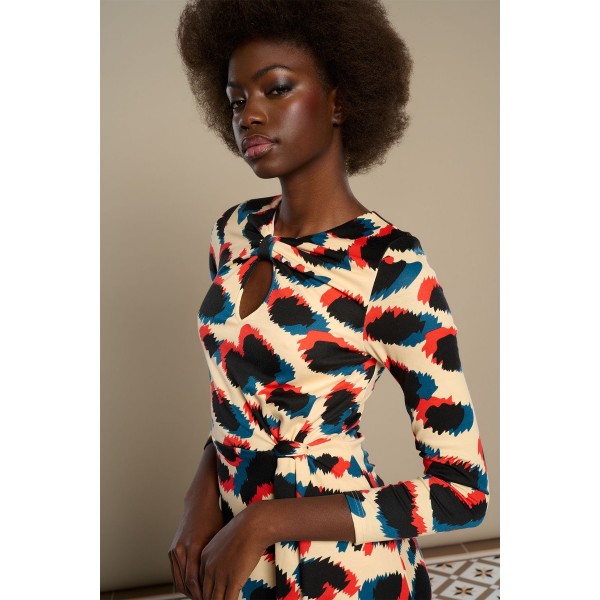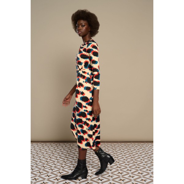 Vestido midi de cuello redondo y escoute cutout. Manga larga. Ajustado en cintura. Forro interior. Cierre en espalda con cremallera en costura.