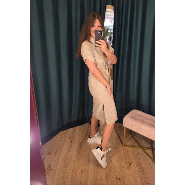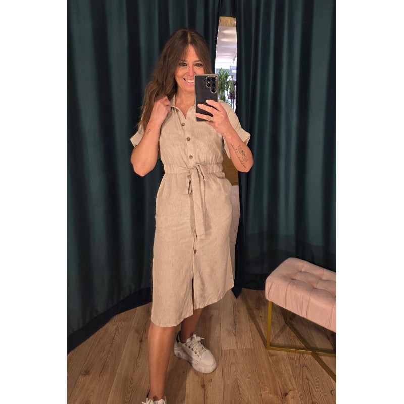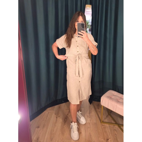 El tejido solo cede en la cintura porque es elástica y tiene dos tiras para hacer lazada, un patrón súper femenino.