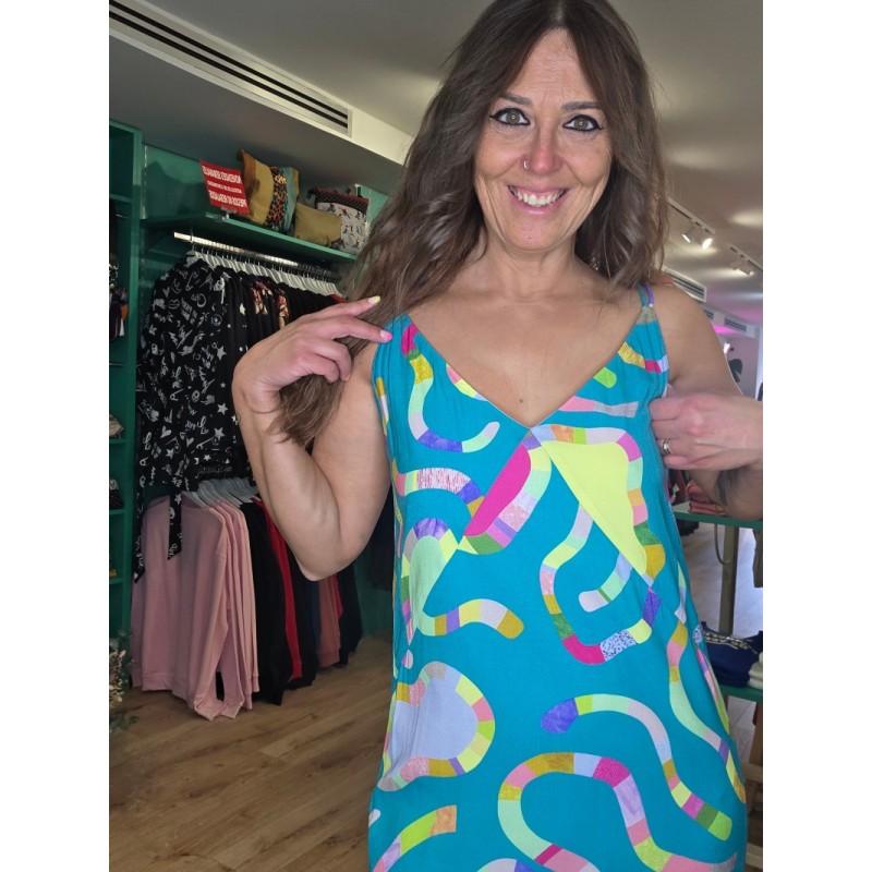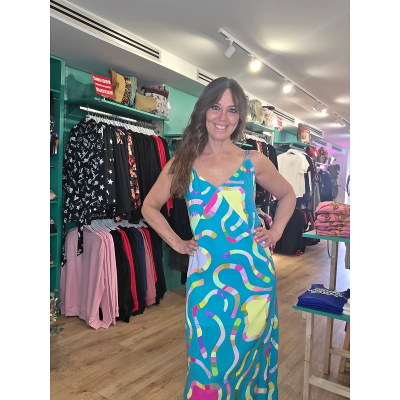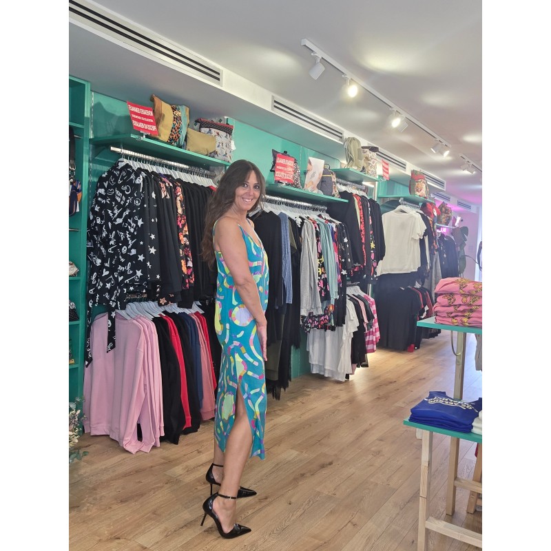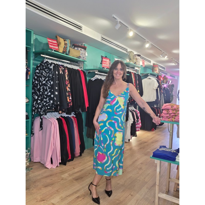 Vestido largo midi con original estampado de piscinas.