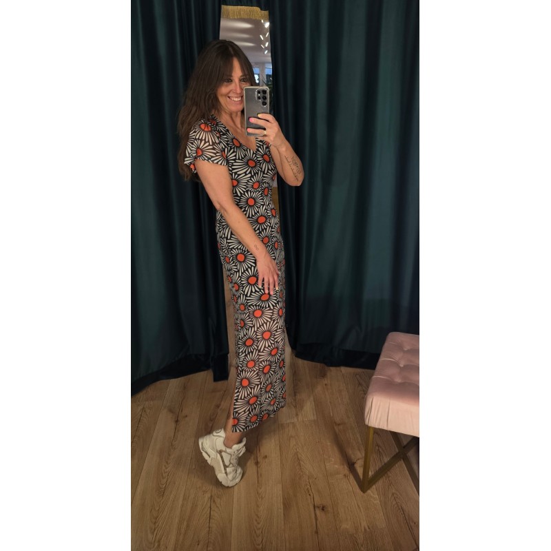Vestido largo de tul con estampado de flores.