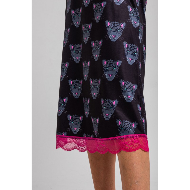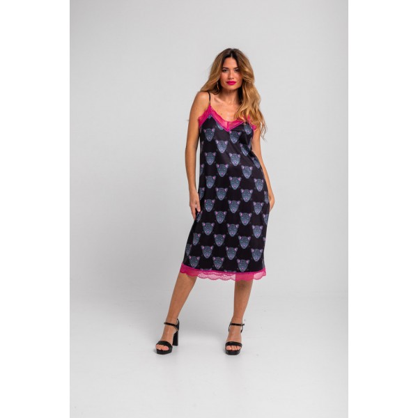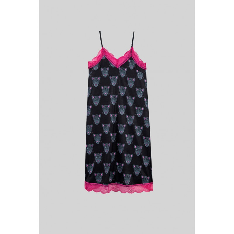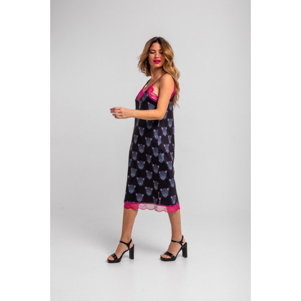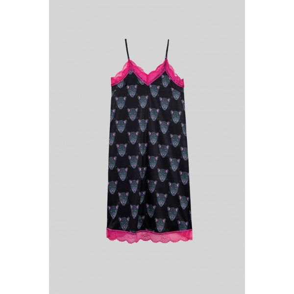VESTIDO LENCERO CON ENCAJE NEGRO DE PANTERAS-NOCTURNA