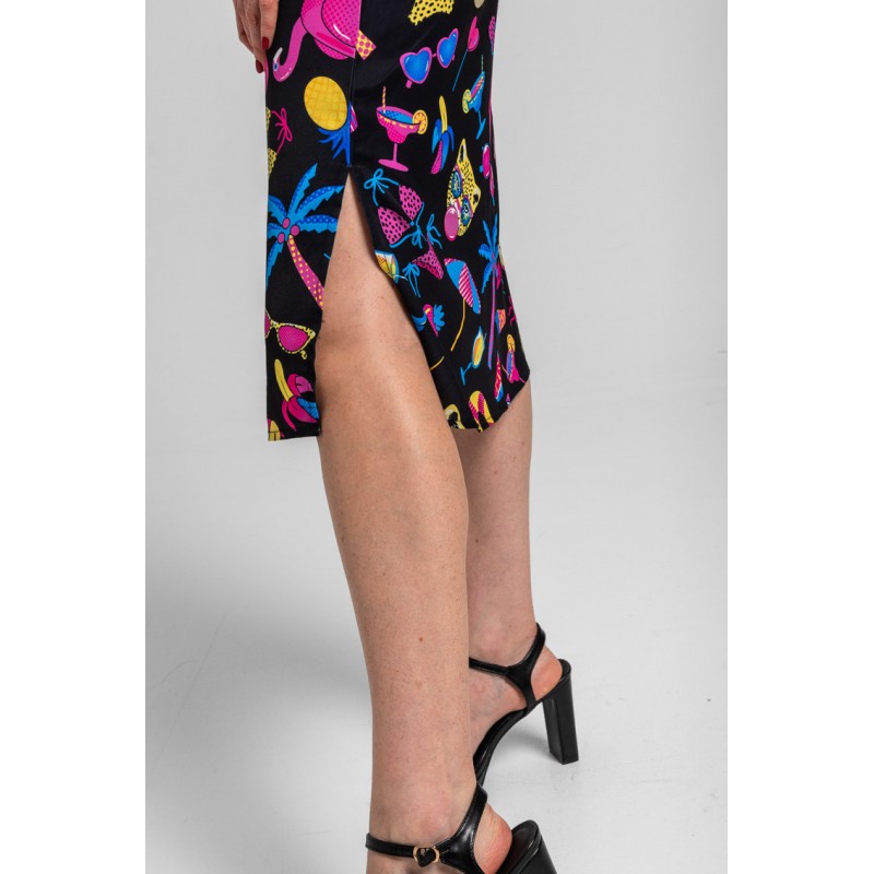 VESTIDO LENCERO NEGRO CON ESTAMPADO VERANIEGO