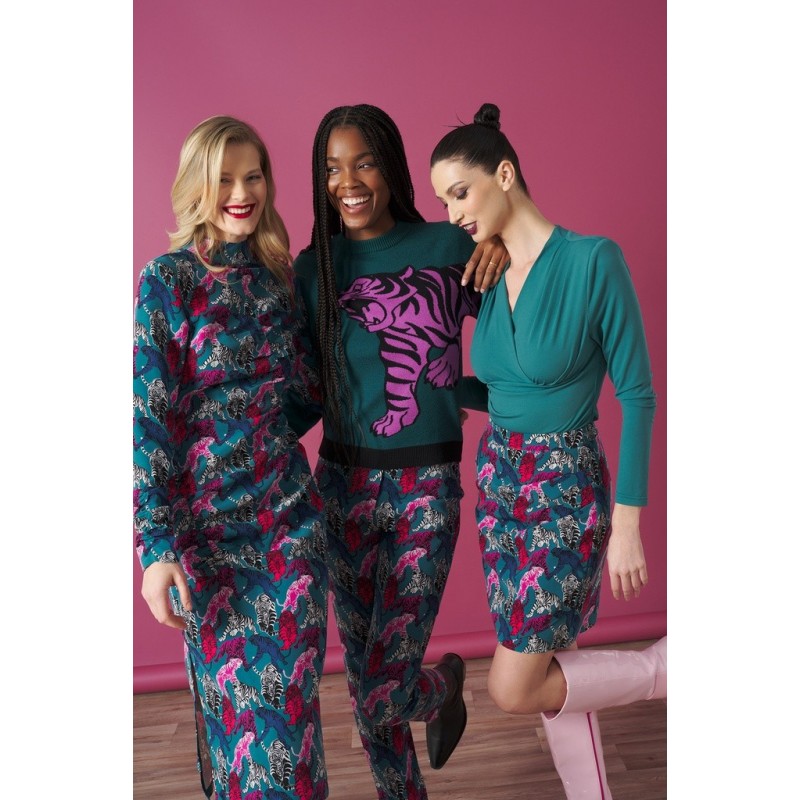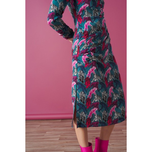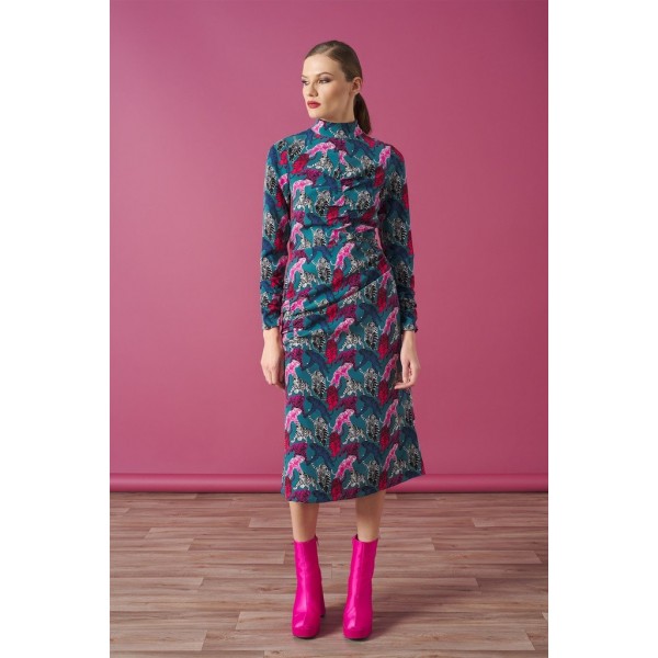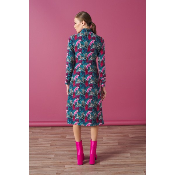 Vestido midi de cuello perkins y manga larga. Forro interior.